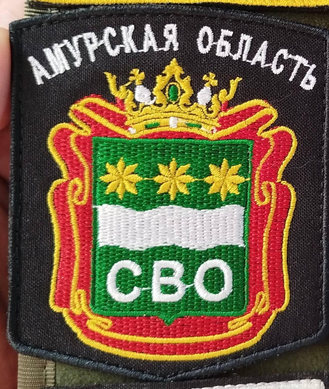 6-7. 165-я артиллерийская бригада, г. Белогорск, Амурская область и шеврон с надписью «Амурская область» и гербом региона