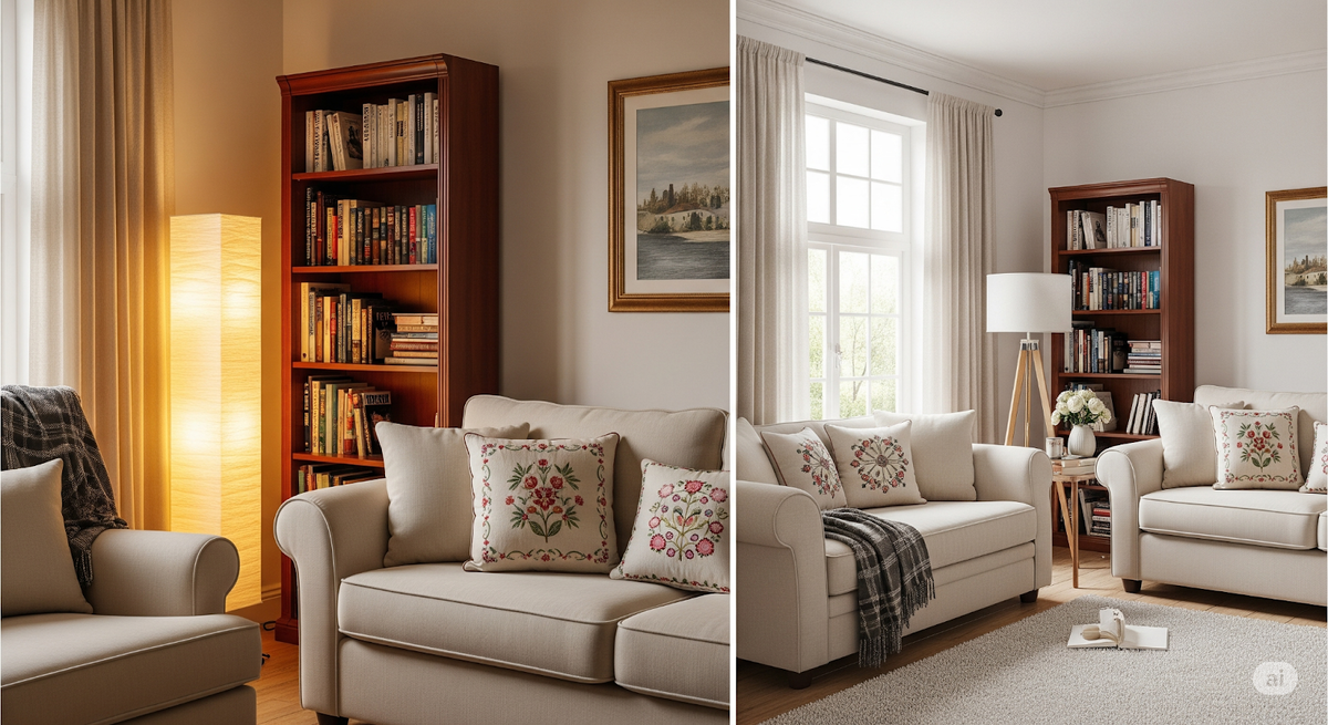 - Смена источников света: Попробуйте перенести освещение для создания новых акцентов в интерьере.
