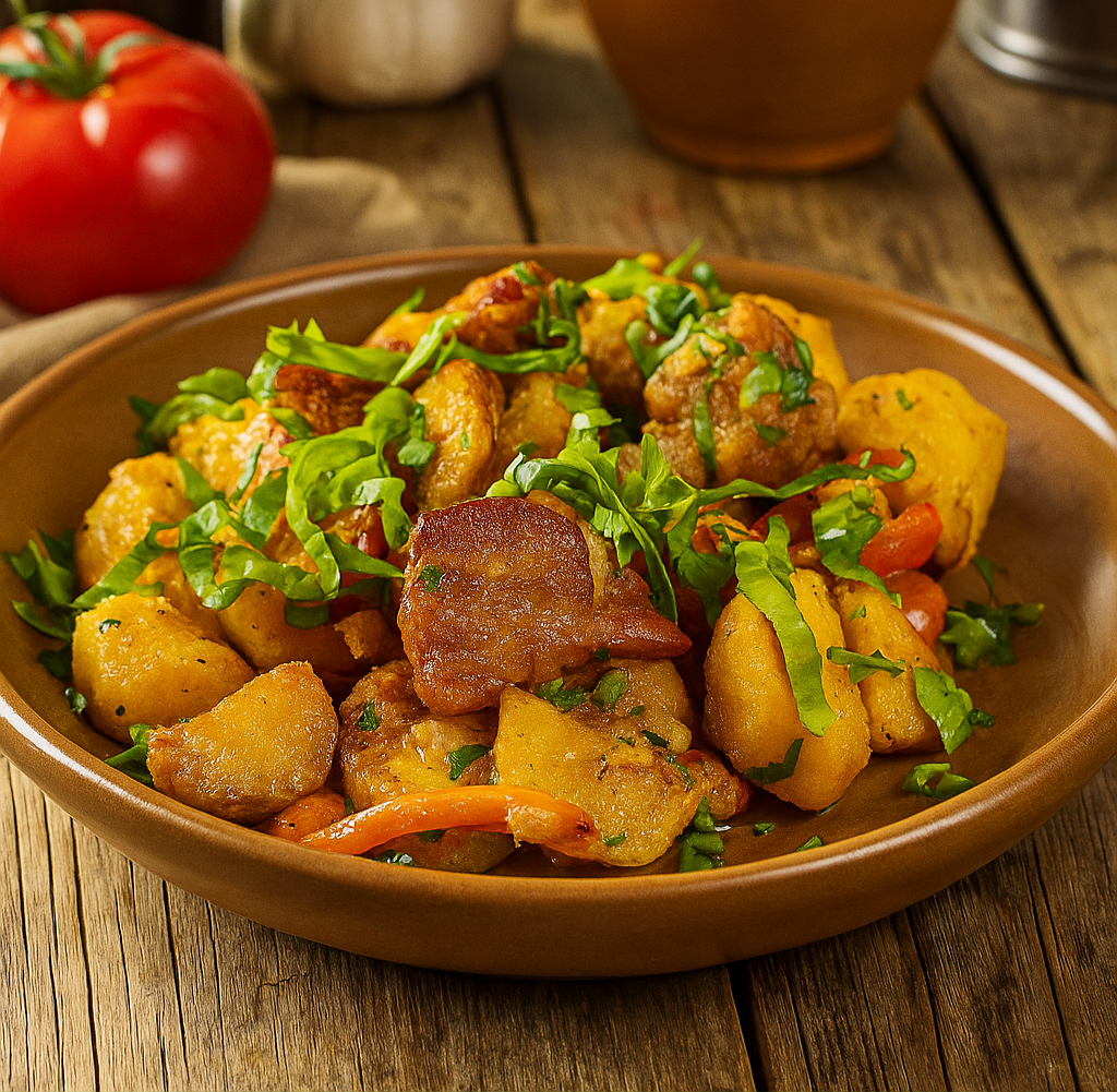 Иногда достаточно простой композиции, чтобы вечер заиграл новыми красками. Аджахури – одно из таких блюд, где мясо сочетается с картофелем и чесноком, а специи добавляют домашнюю теплоту.