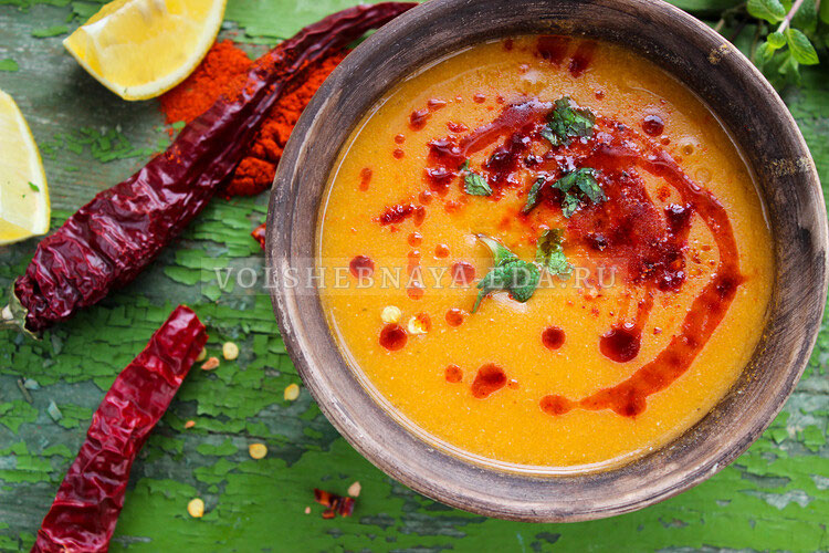 Суп готовится с минимумом действий: лук и морковь пассируются до мягкости, затем добавляются специи и чечевица, после чего масса доводится до состояния пюре. В финале достаточно щепотки соли и перца и небольшой лимонный акцент при подаче.